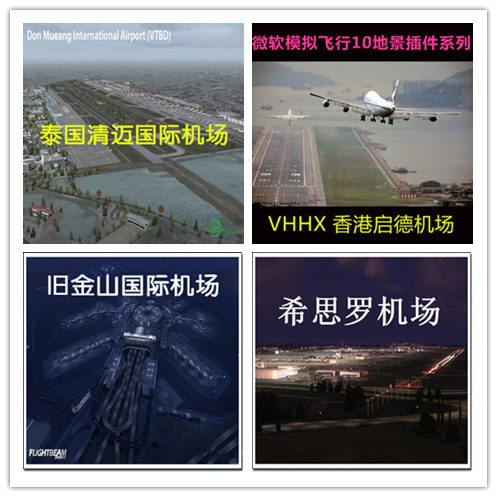 另外附带包括几十个中国机场独立地景,亚洲、欧洲、大洋洲、北美洲等独立的机场地景包。